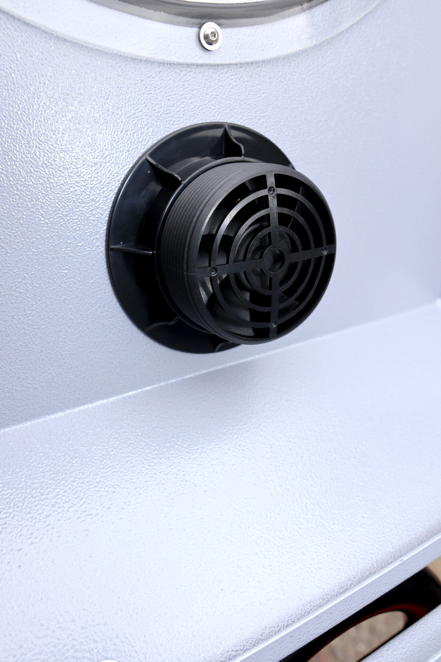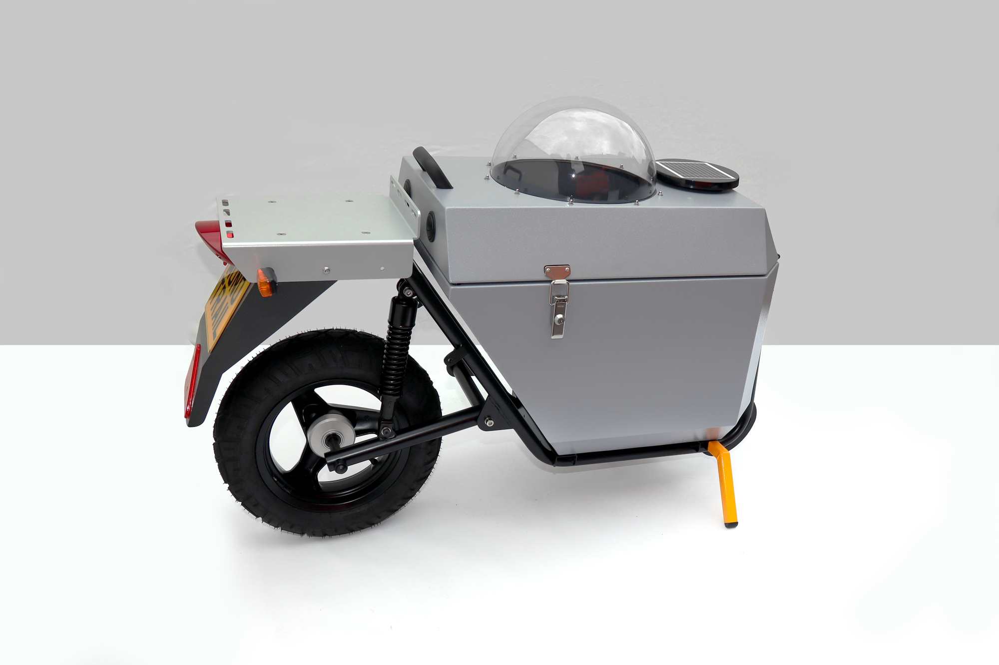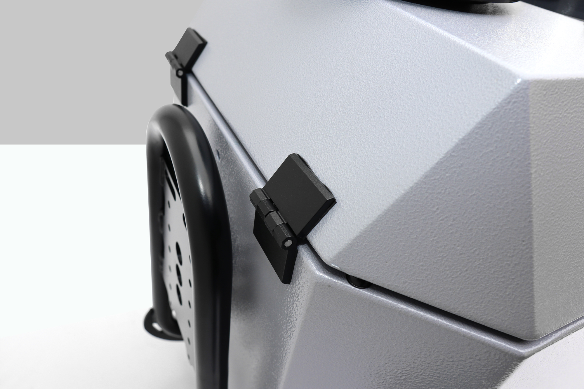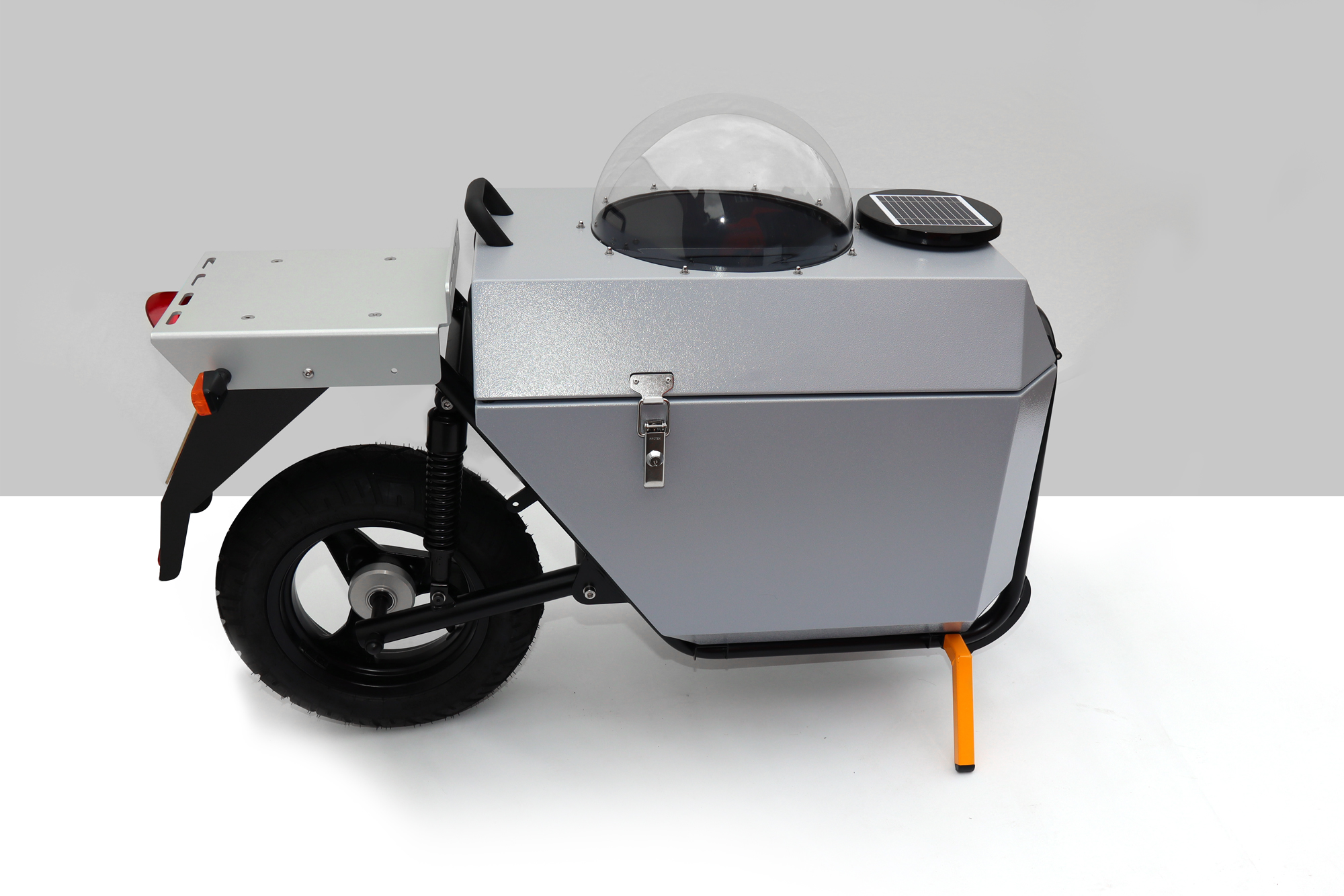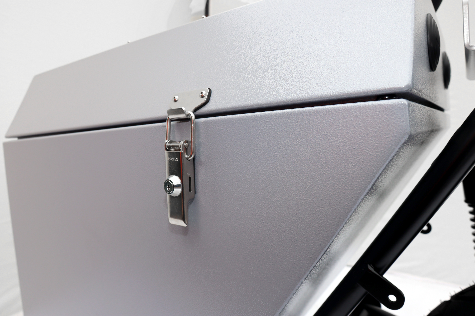 Aluminium body fully welded seams. Hinged lid at front with lockable catch each side. Solar fan. External vents. Perspex dome. Height adjustable floor.