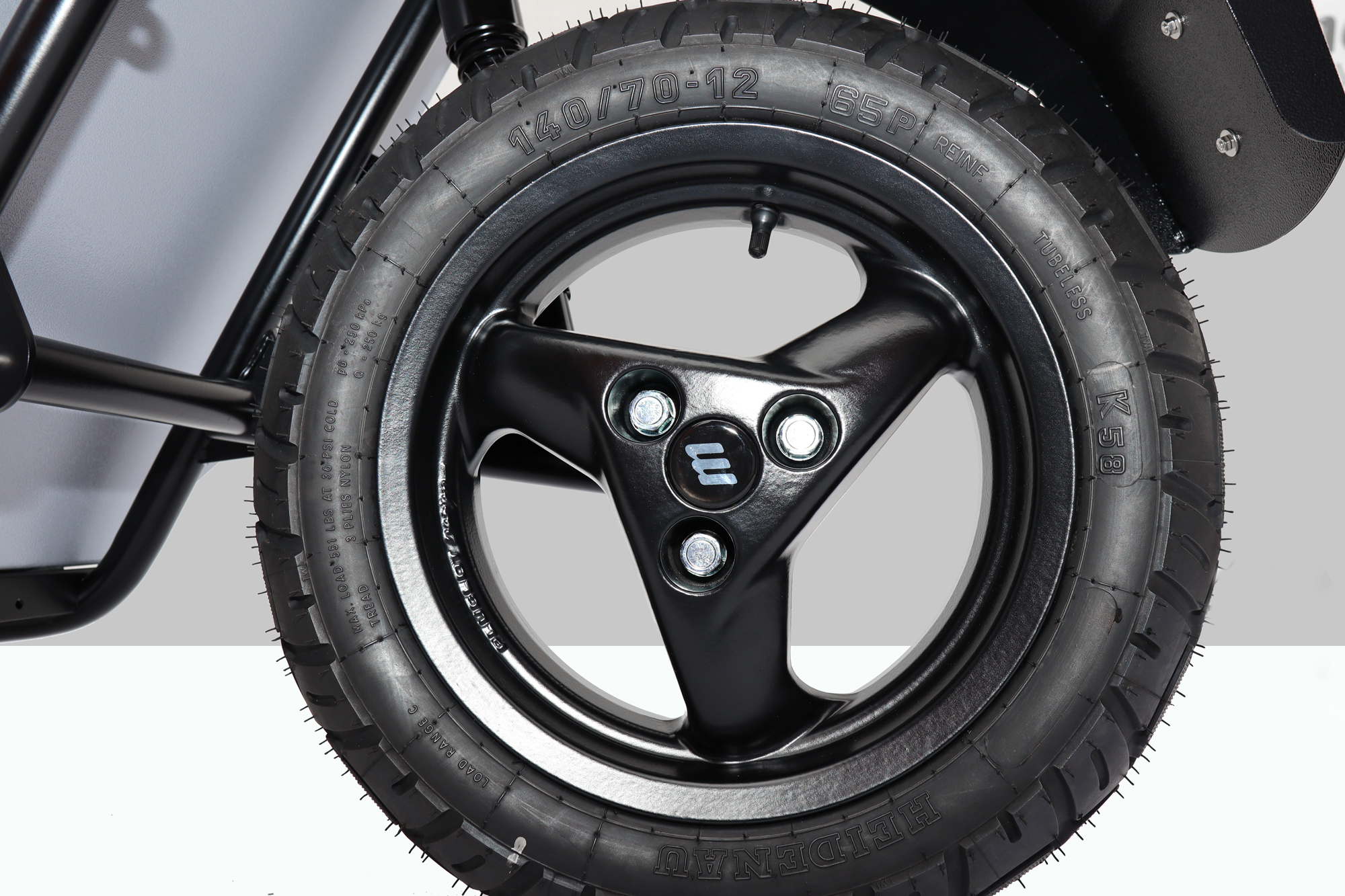 12″ Cast Alloy Wheel – Powder Coated carried on CNC machined custom designed anodised alloy hub.
